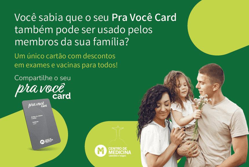 Você sabia que aqui no Centro de Medicina você pode ter um cartão grátis, que te dá descontos para cuidar da saúde da sua família?